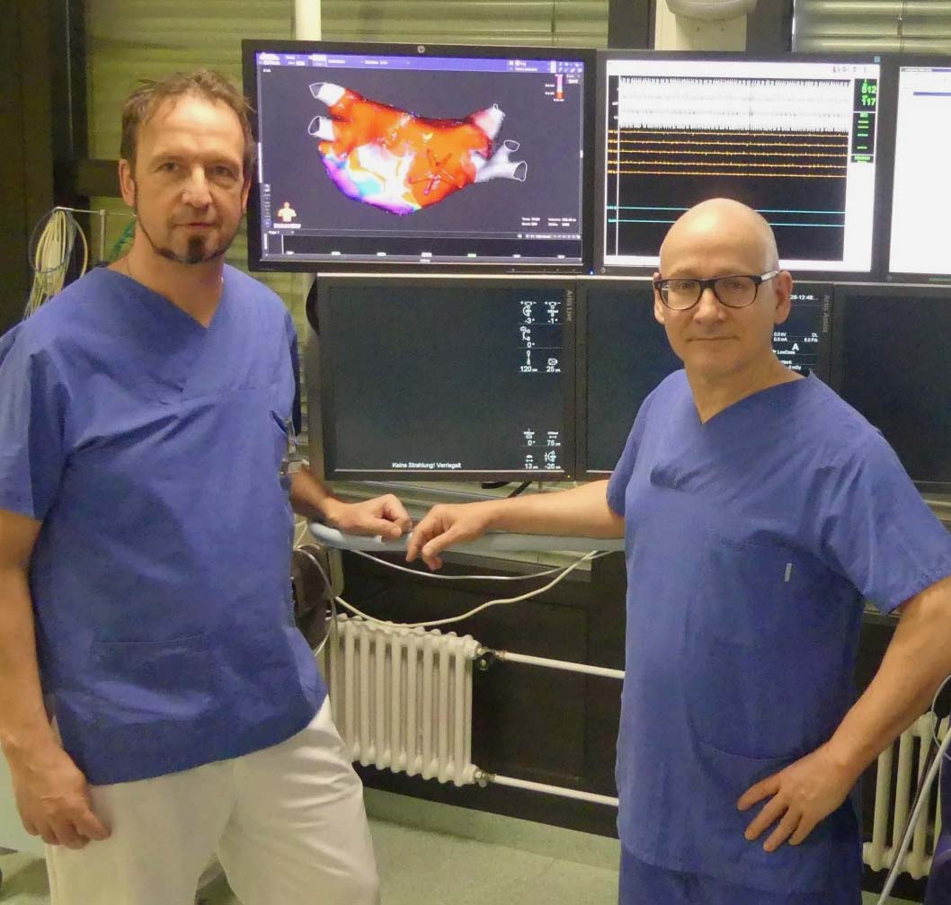 Für komplexere Herzrhythmusstörungen steht dem Klinikum Friedrichshafen seit einigen Monaten ein neues Gerät zur Verfügung, um die Pulsfeldkatheter mit dem hochauflösenden Navigationssystem zu kombinieren. „Ein atypisches Vorhofflattern, beispielsweise, tritt häufig nach früheren Herzoperationen auf und ist oft schwieriger zu behandeln, da die krankhaften Stromkreise individuell sehr unterschiedlich verlaufen können“, sagt Dr. Bauerle und erklärt den entscheidenden Fortschritt der neuen Methode: „Die Kombination von Ablationskatheter und unserem modernem 3D-Mappingsystem hilft, den Weg des Herzrhythmus sichtbar zu machen“. Die Ärzte erstellen während des Eingriffs eine dreidimensionale Landkarte des Herzens. Dieses sogenannte Mapping zeigt die elektrischen Signale des Herzmuskels in Echtzeit und macht krankhafte Leitungsbahnen sichtbar.