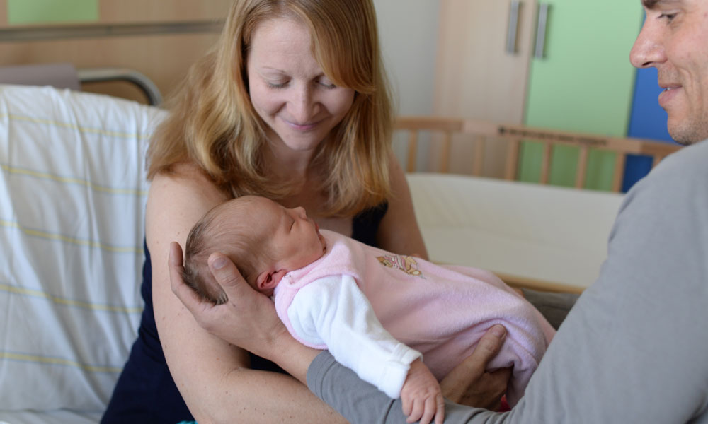 Zur Unterstützung der Bindung von Mutter und Neugeborenem und einem optimalen Start in das Familienleben betrachten wir Vater, Mutter und Kind als Einheit. Beim "24-Stunden Rooming-in" bleiben Sie mit Ihrem Neugeborenen zusammen. So haben Sie Zeit und Ruhe, Sicherheit im Umgang mit Ihrem Kind zu entwickeln.
